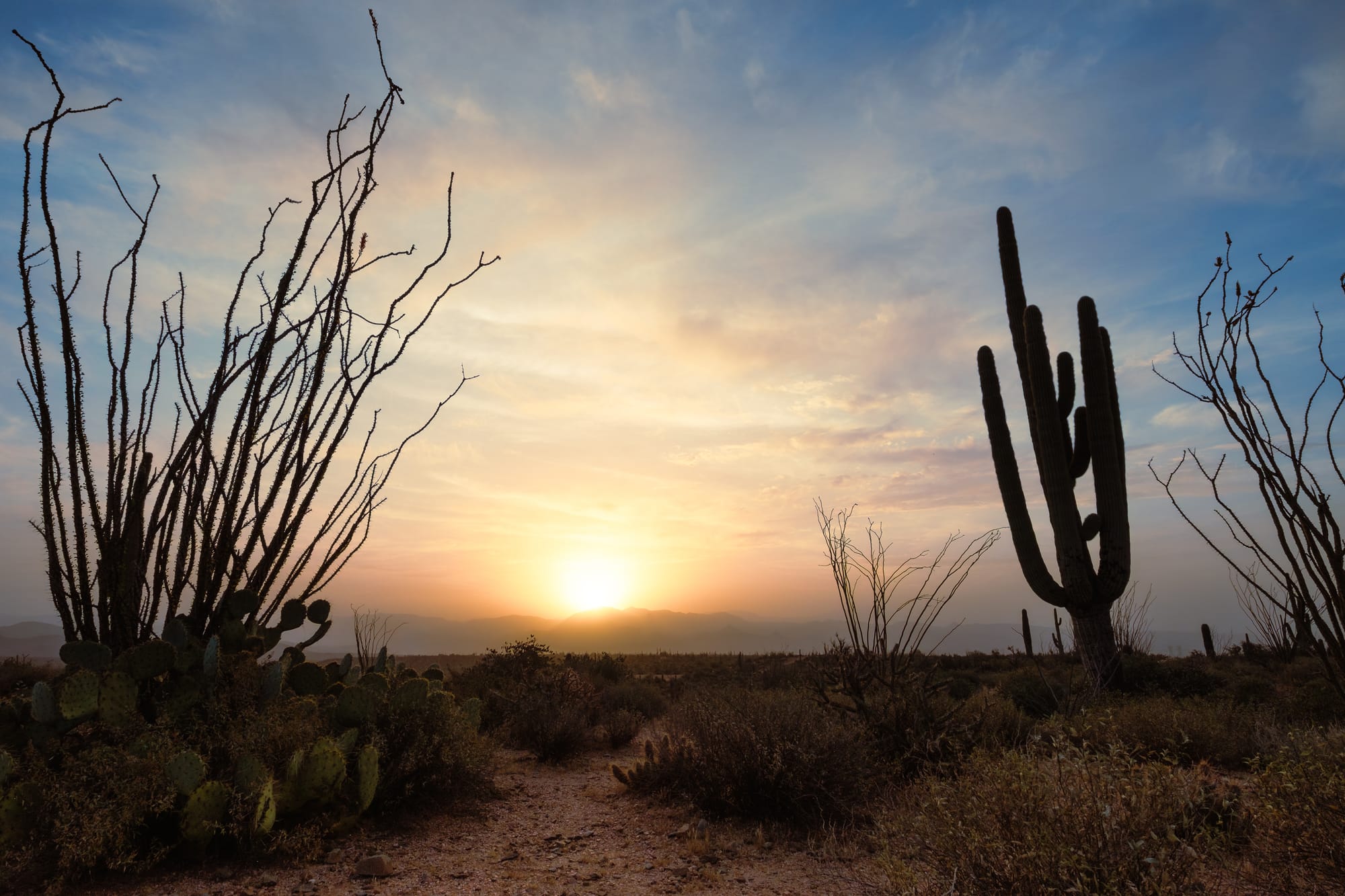 The fact that I actually thought ahead and timed my outing according to the weather forecast and cloud forecast was spot on. I expected there to be a lot of dust in the air and my goodness was there ever. So much so that Sky Harbor Airport had to shut down for a few hours on this day. That's why there's so much glow in the distance on these photos. That was good. Also, even though I don't love my composition, I think the balance of the Saguaro and the Ocotillo bushes in the foreground is nice and flows well. The light and clouds are really good too. The fact that I actually woke up and got out at 5am is pretty impressive.